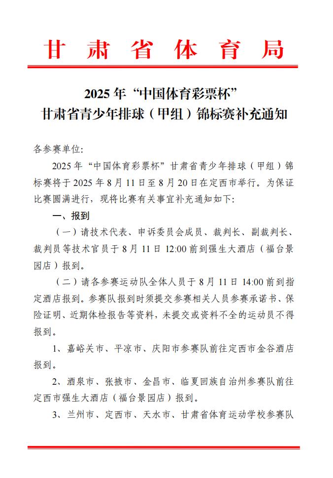 2025年“中国体育彩票杯”甘肃省青少年排球(甲组)锦标赛补充通知